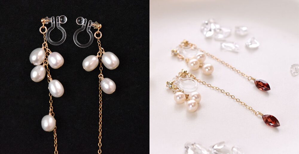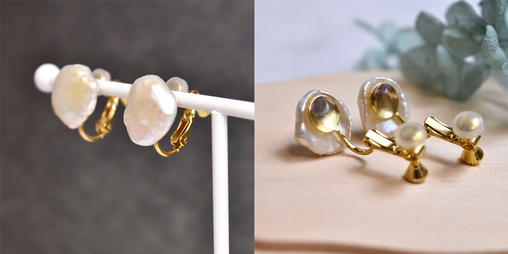 敏感肌・金属アレルギーの人でも使いやすいパーツの【16KGPのイヤリング】【樹脂ノンホールイヤリング】を購入します。